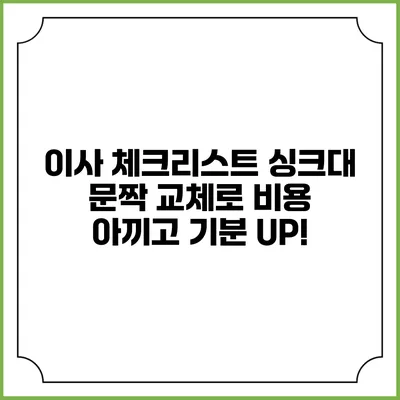 이사라는 큰 프로젝트를 떠올리면 스트레스가 밀려오는 경우가 많아요. 하지만, 이사 체크리스트를 잘 활용하면 비용을 절감하고 기분도 UP할 수 있답니다. 특히, 오늘은 싱크대 문짝 교체를 통해 이사를 더욱 알차게 준비하는 방법에 대해 이야기해볼게요.