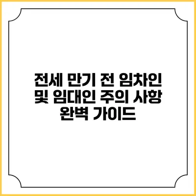 전세 만기 전 임차인 및 임대인 주의 사항 완벽 가이드